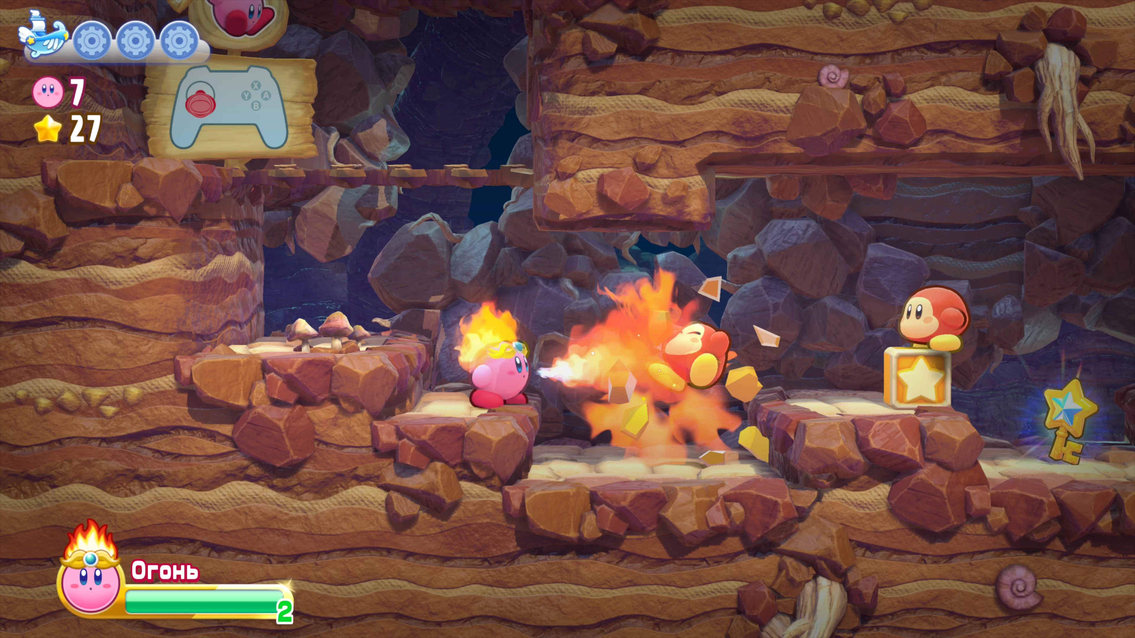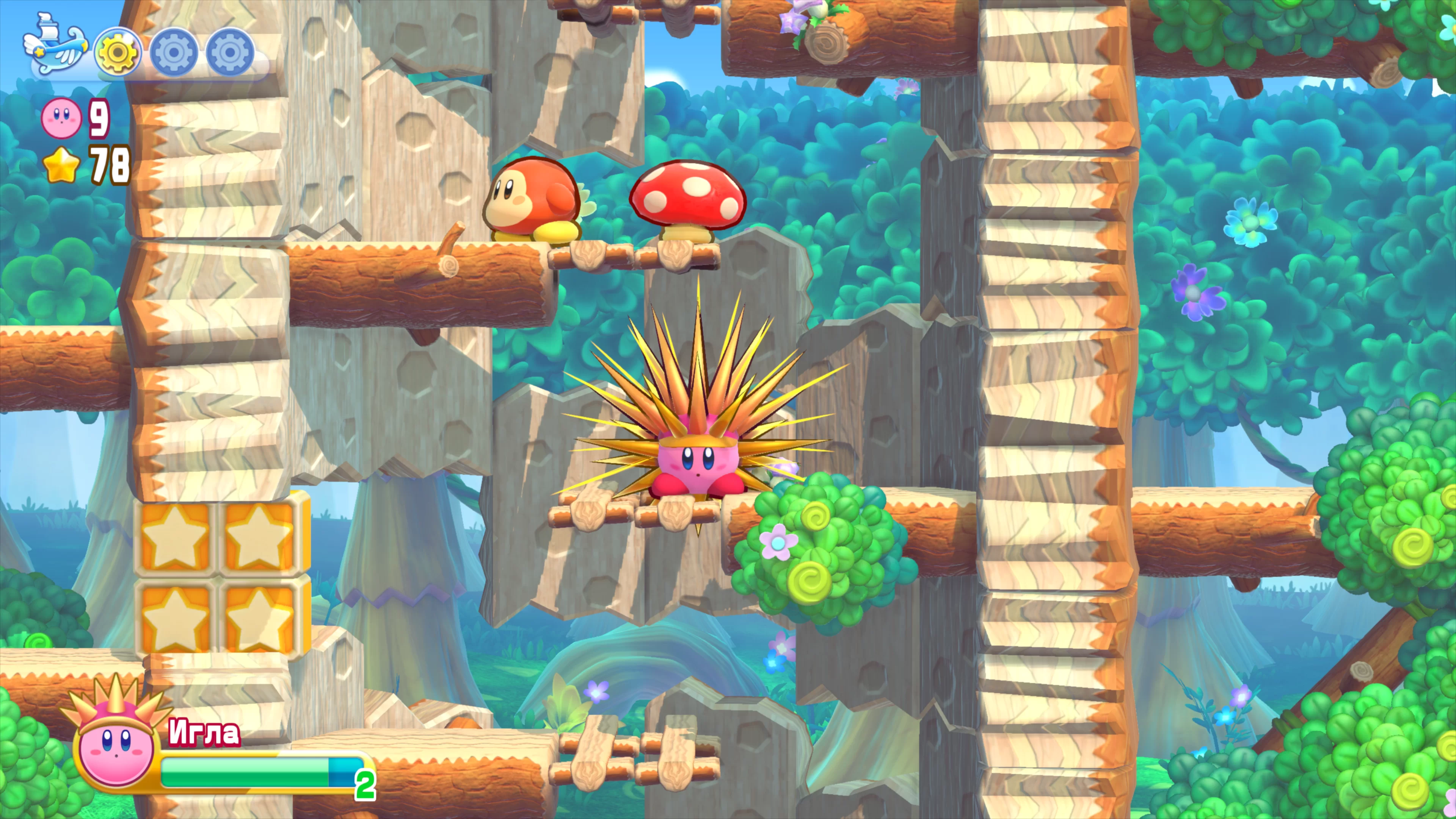При этом никто не мешает вашей компании играть за четырёх Кирби, используя его знаменитые способности к копированию. Помимо хлыста, зонта, меча и прочих знакомых видов умений, в этой части появятся новые способности с мехами и роботами: стреляйте из пушек, летайте и бейтесь в ближнем бою, изменив свою форму.