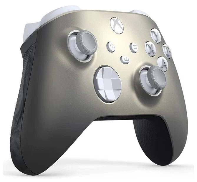 Познакомьтесь с беспроводным геймпадом Xbox из ограниченной серии Lunar Shift и насладитесь его фигурными поверхностями и изысканной геометрией, которые повышают комфорт во время игры. Вы никогда не упустите свою цель благодаря рукояткам с рифлеными накладками с ромбическим узором на триггерах, бамперах и задней поверхности. Легко захватывайте контент и делитесь им с помощью специальной кнопки «Поделиться». Быстрое сопряжение, воспроизведение и переключение между устройствами, включая Xbox Series X|S, ПК с Windows, Android и iOS