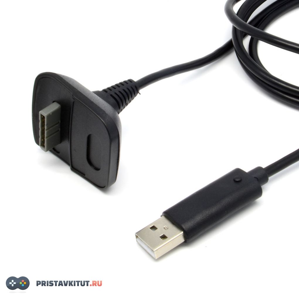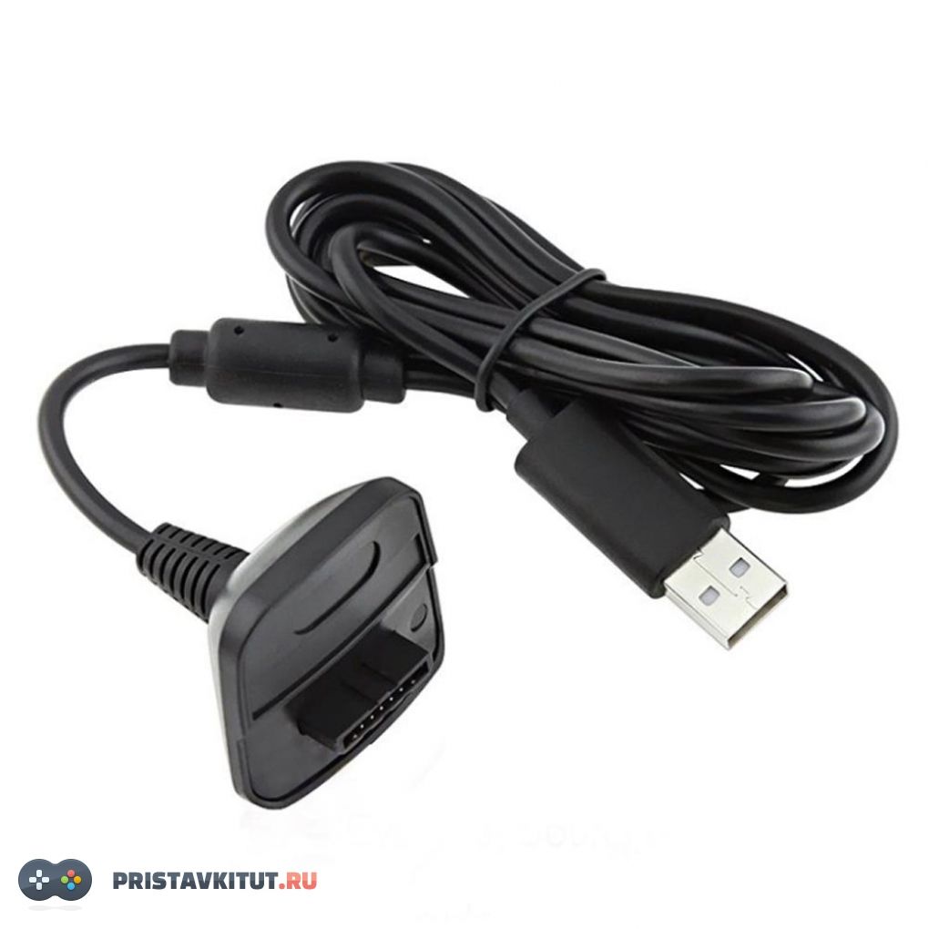 Кабель позволяет заряжать аккумуляторы беспроводного джойстика Xbox 360 не отрываясь от игры.
