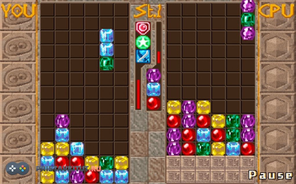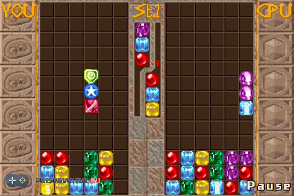 Консольная версия игры Columns от компании Sega была выпущена в свет 29-го июня 1990-го года. Она является очередной разновидностью Тетриса, где необходимо составлять блоки из трех и более одинаковых драгоценных камней. Летящие сверху блоки состоят из трех камней, порядок расположения которых можно менять во время движения. Если на дне экрана получается конструкция, в которой три одинаковых камня оказываются по соседству, ряд из этих одноцветных элементов исчезнет, освободив немного места для следующих блоков. Как только нагромождения драгоценностей достигнут потолка, игра закончится. Смысл заключается в том, чтобы набрать как можно больше очков.
