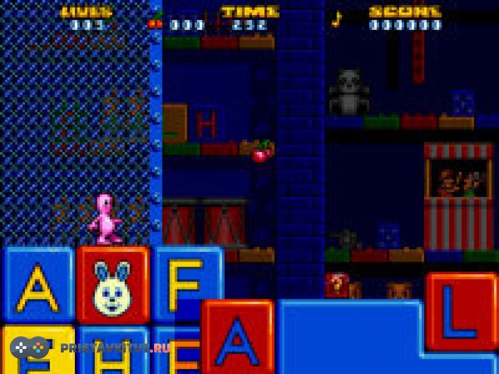 Это типичный платформер с огромными уровнями. На каждой стадии Вы встретите кучу всяких мерзких созданий от странных маленьких человечков до гигантских клацающих челюстей! И они не задумываясь закусят аппетитнейшим желе — Jelly Boy. Графика достаточно проста, но для игры этого типа и не нужно искусства Леонардо. Музыка вполне приличная, соответствует характеру действия, без оглушающих эффектов.