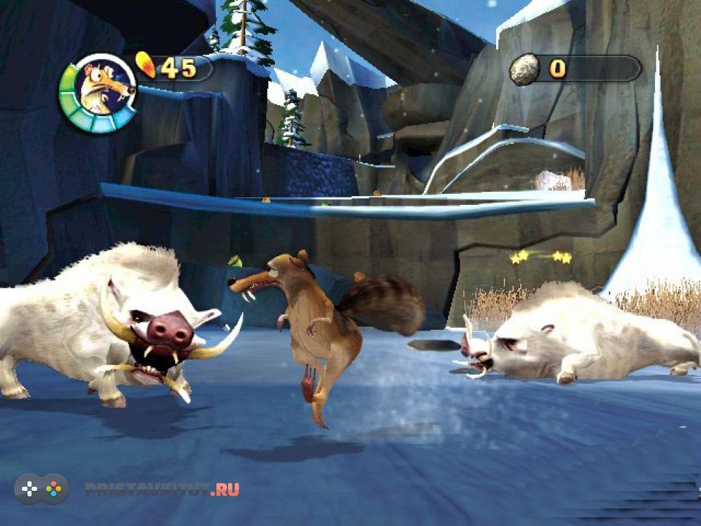 Помогите разношёрстной компании животных наступающего глобального потепления и выйти на сушу, где их уже не будут преследовать бесконечные опасности. Кроме самого оригинального игрового процесса The Meltdown предлагает ещё и кучу разнообразных мини-игр, которые могут разнообразить наше время нахождения в виртуальном мире и позабавить детей.-События игры развернутся, когда Ледниковый период окончен, и любимые многими герои - мамонт Мэнни, ленивец Сид и саблезубый тигр Диего осознают, что тающие ледники совсем скоро покроют их любимую уютную долину толстым слоем воды. Приятели в компании саблезубой белки по имени Скрат решаются на нелегкое путешествие в поисках лучшего места для проживания. Именно эта всеобщая любимица и выступит главным игровым персонажем Ice Age 2: The Meltdown.